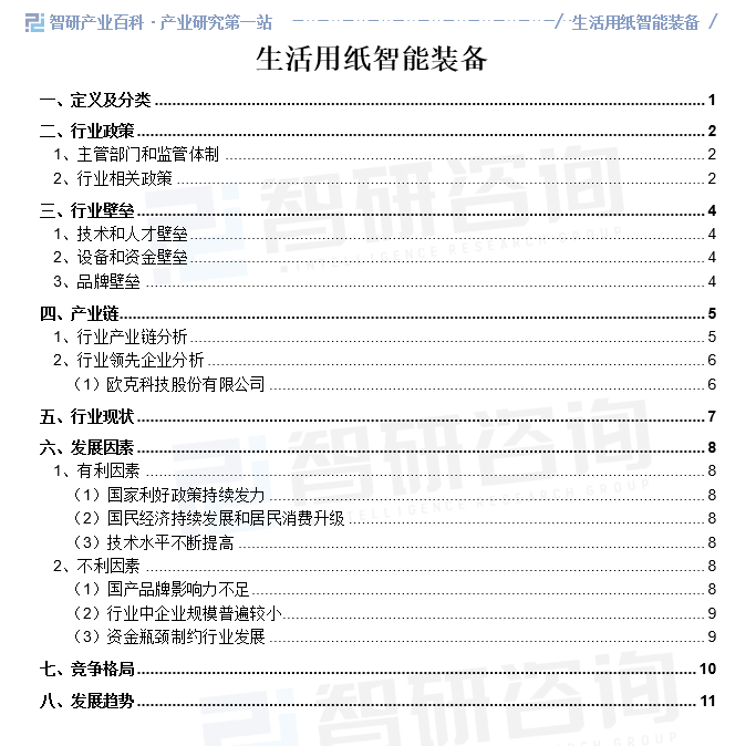 智研财产百科是智研征询推出的产研东西平台,努力于为您供给全方位的百科式财产消息查询办事。智研征询践行用消息驱动财产成长的企业,完美和丰硕企业方,依托财产百科平台提拔消息价值,持续为行业成长及企业投资决策赋能。糊口用纸智能配备财产百科做为糊口用纸智能配备财产一坐式系统化研究东西,全面归纳了糊口用纸智能配备财产学问消息,内容涵盖糊口用纸智能配备财产的定义、分类、政策、财产链、合作款式、成长趋向等,并依托消息手艺成立智能互链的行业学问图谱,为行研从业者及相关投资者供给深切的洞察力和全面的消息。